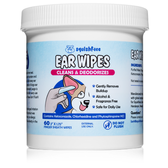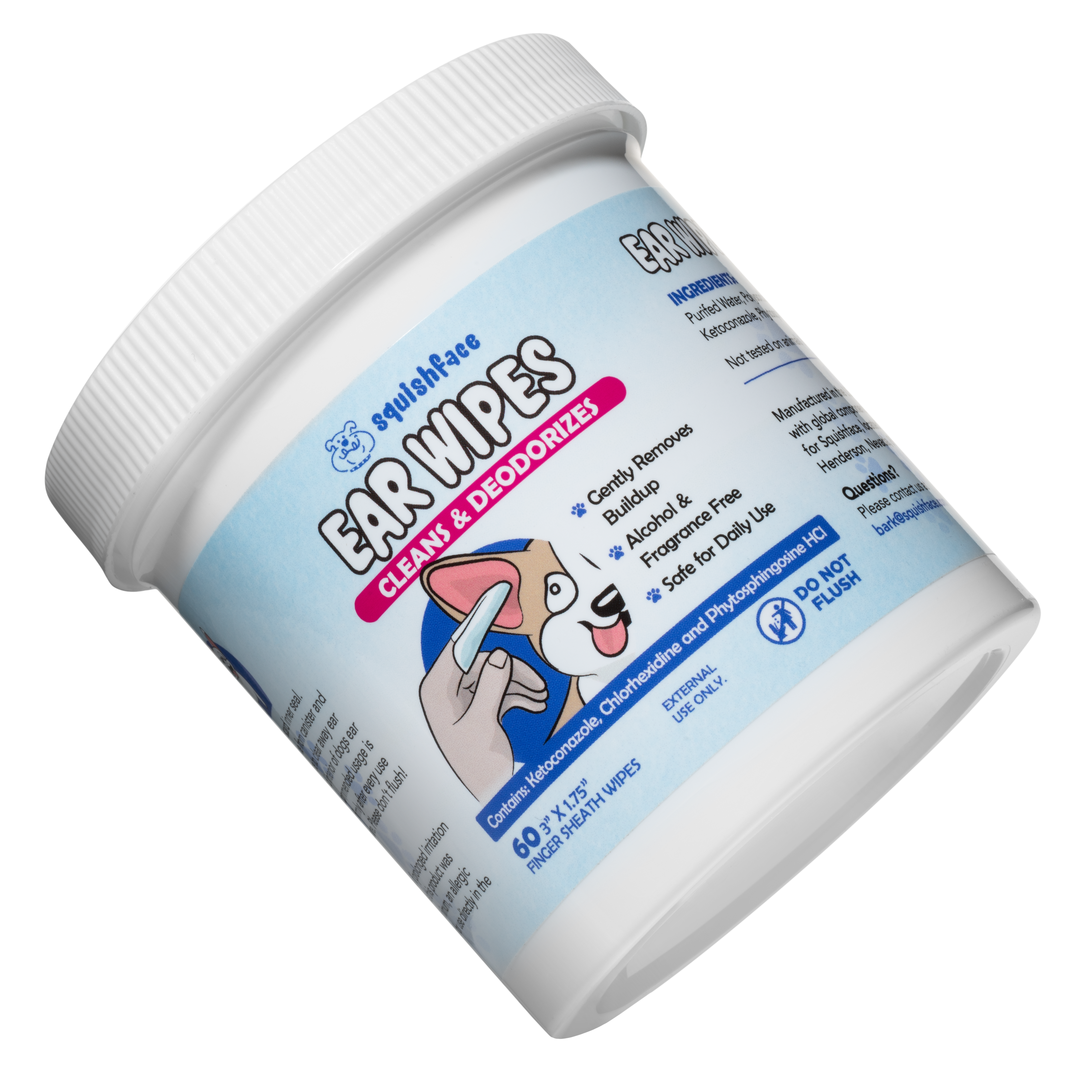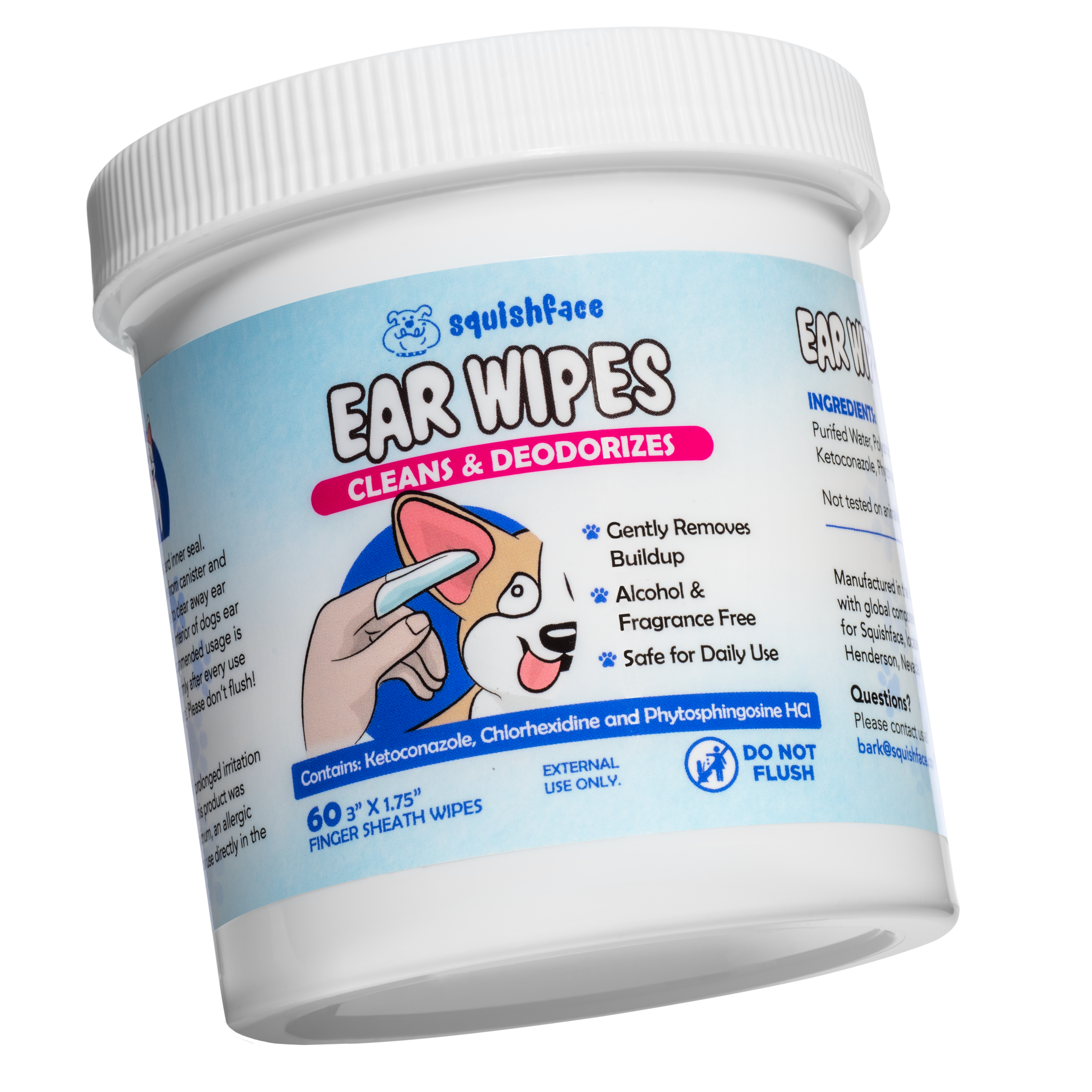 Squishface Ear Wipes are convenient pre-moistened finger sheath wipes that allow you to get deep down into the hard-to-reach areas of your dog’s ear to help clean & deodorize! Odors and irritations are kept at bay, avoiding expensive vet bills. No more head shaking, scratching, pawing, or discomfort from infected ears!