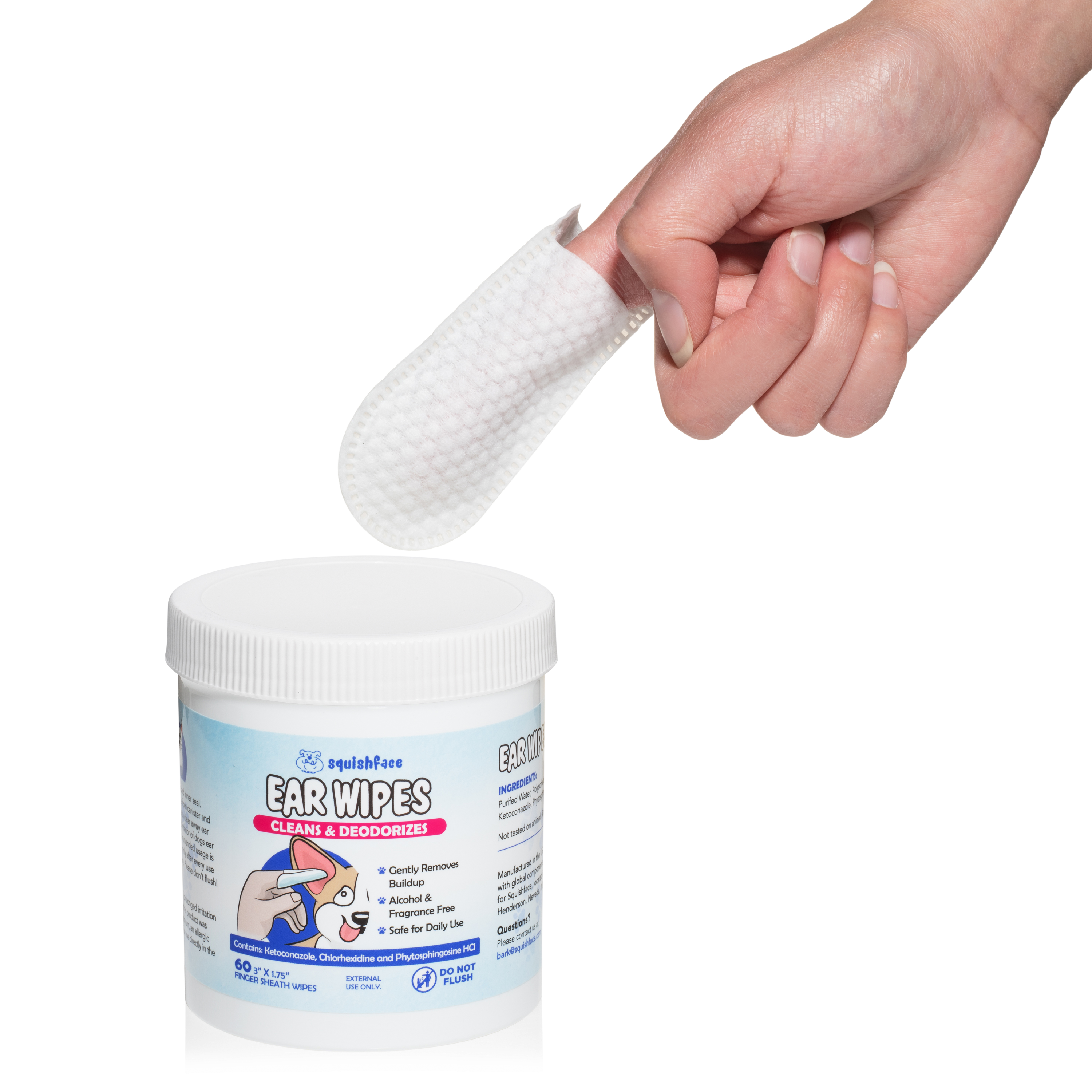 Squishface Ear Wipes - Dog Ear Cleaner Finger Wipes for Itchiness & Odor Control