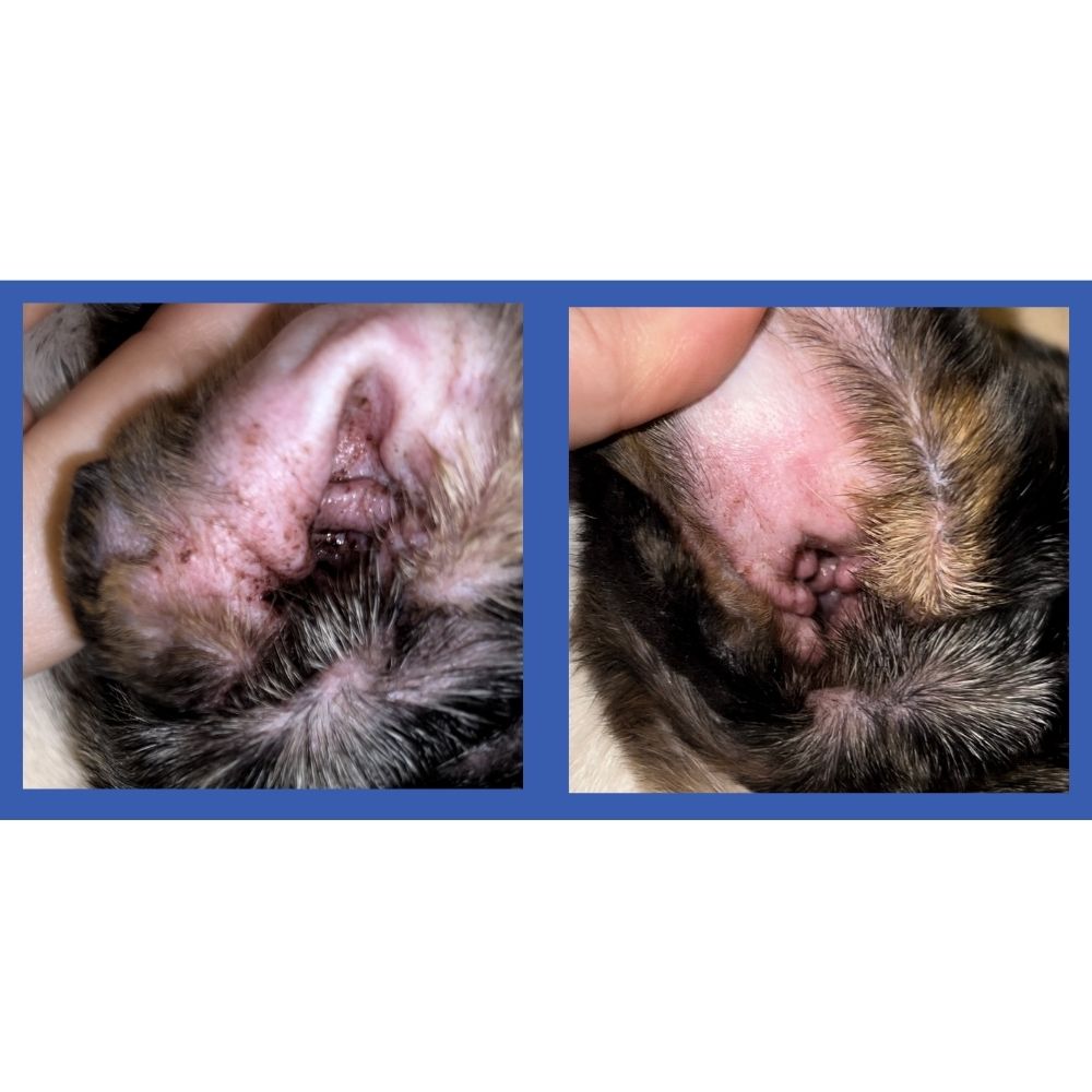 For most dogs, we recommend cleaning ears 1–3 times per week to prevent buildup and odor. Breeds with long or floppy ears (like Cocker Spaniels, Bulldogs, and Poodles) may benefit from more frequent cleaning, especially during humid or allergy-prone seasons.