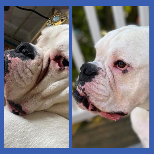 Squishface Wrinkle Paste English Bulldog Bully Nose Rope Wrinkle Wrinkles Tear Stain TearStains TearStaining Tear Staining Skinfold Skin Fold Dirty Raw Red Irritated Yeast Infected Infection Before After Photo Pic Pics