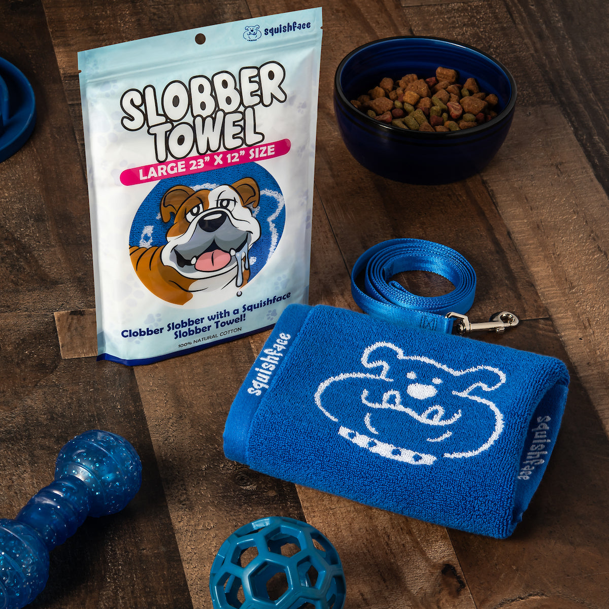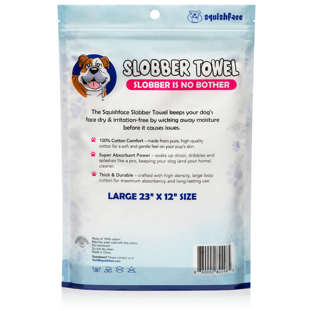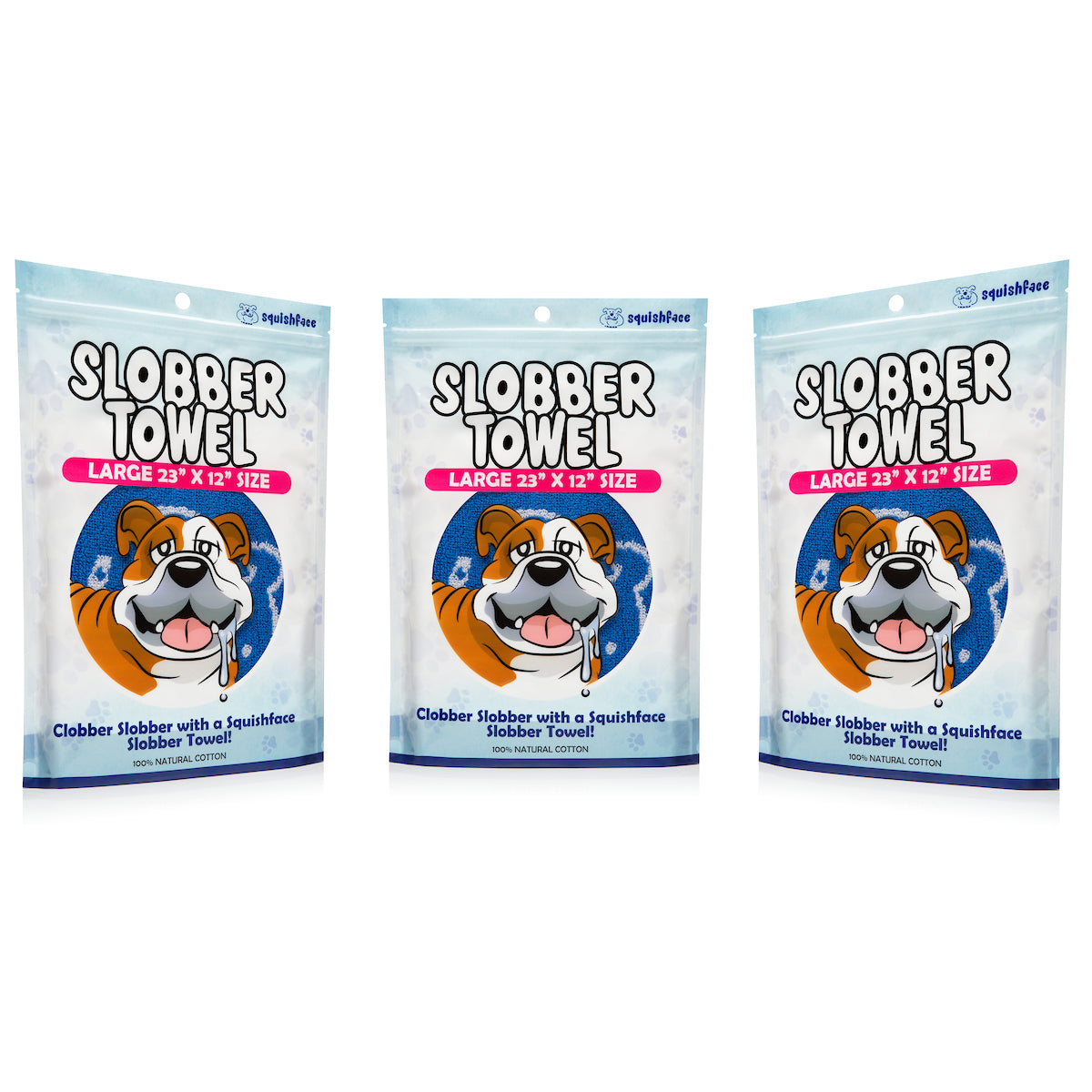 The Squishface Slobber Towel is the must-have solution for messy pups and their humans. Made from super-absorbent cotton, the Slobber Towel is soft on sensitive skin, durable for daily use, and machine-washable for long-lasting performance. It’s the best towel for slobbery dog breeds like Bulldogs, Mastiffs, and St. Bernards — but perfect for any pup who loves to drool.