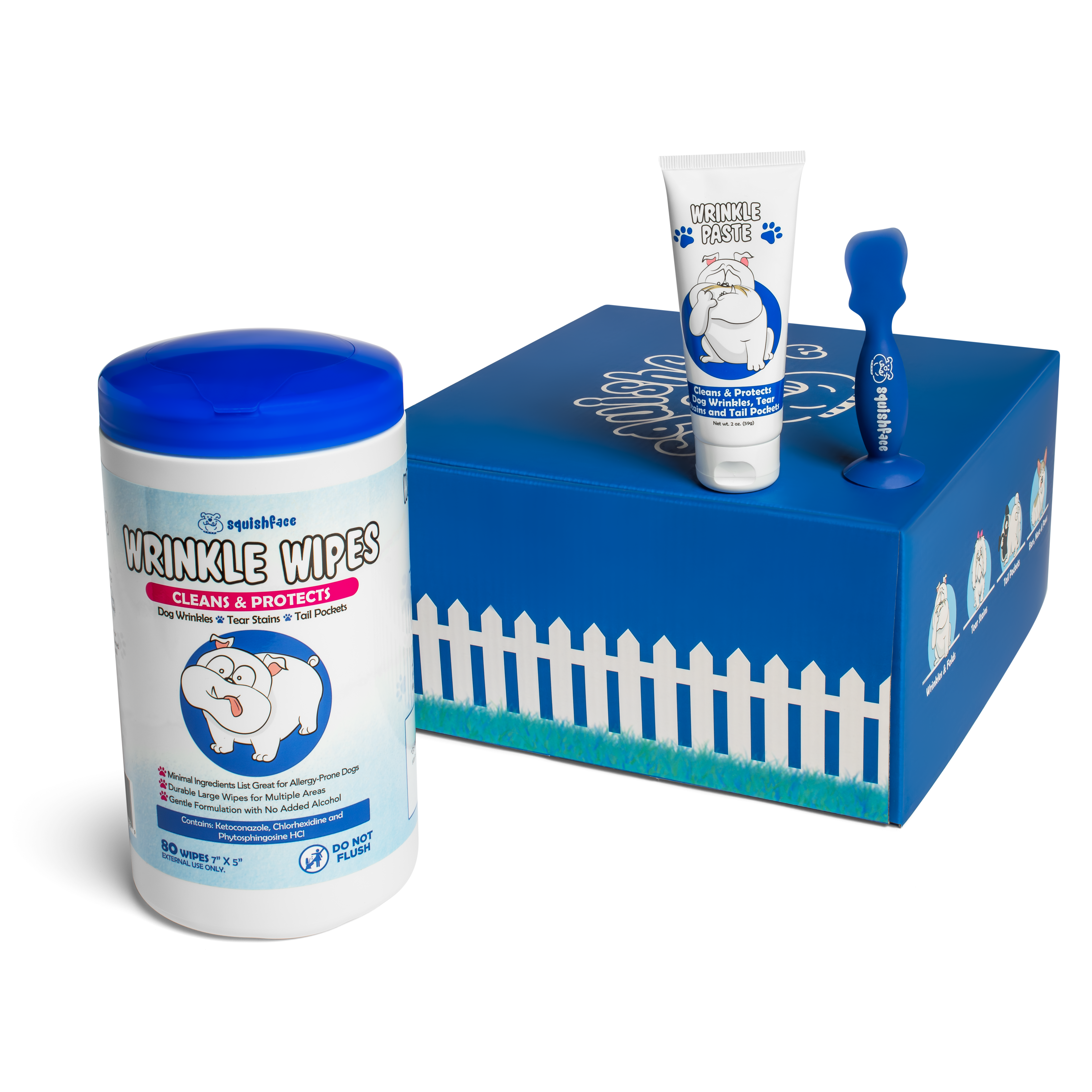 This bundle includes gentle essentials designed to keep dog wrinkles clean, dry, and comfortable as part of an easy, everyday care routine. Each product works together to help remove buildup, manage moisture, and support healthy skin in wrinkle-prone areas.
